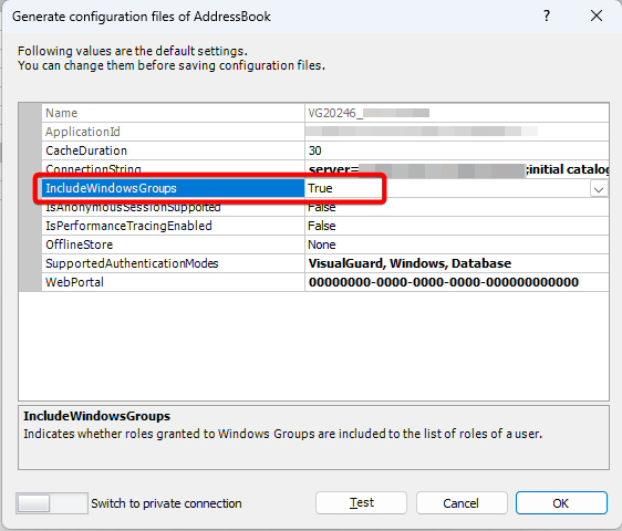 - Click on the IncludeWindowsGroups row, “v” will appear at the end.
