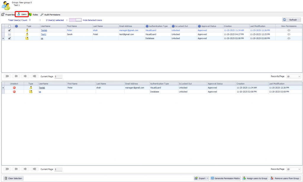 Visual Guard allows you to create groups and manage users assigned to the group.